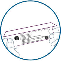 Grasp the tab on the right side of the blister card where it says, “PULL OUT HERE” and pull out the folded blister card.